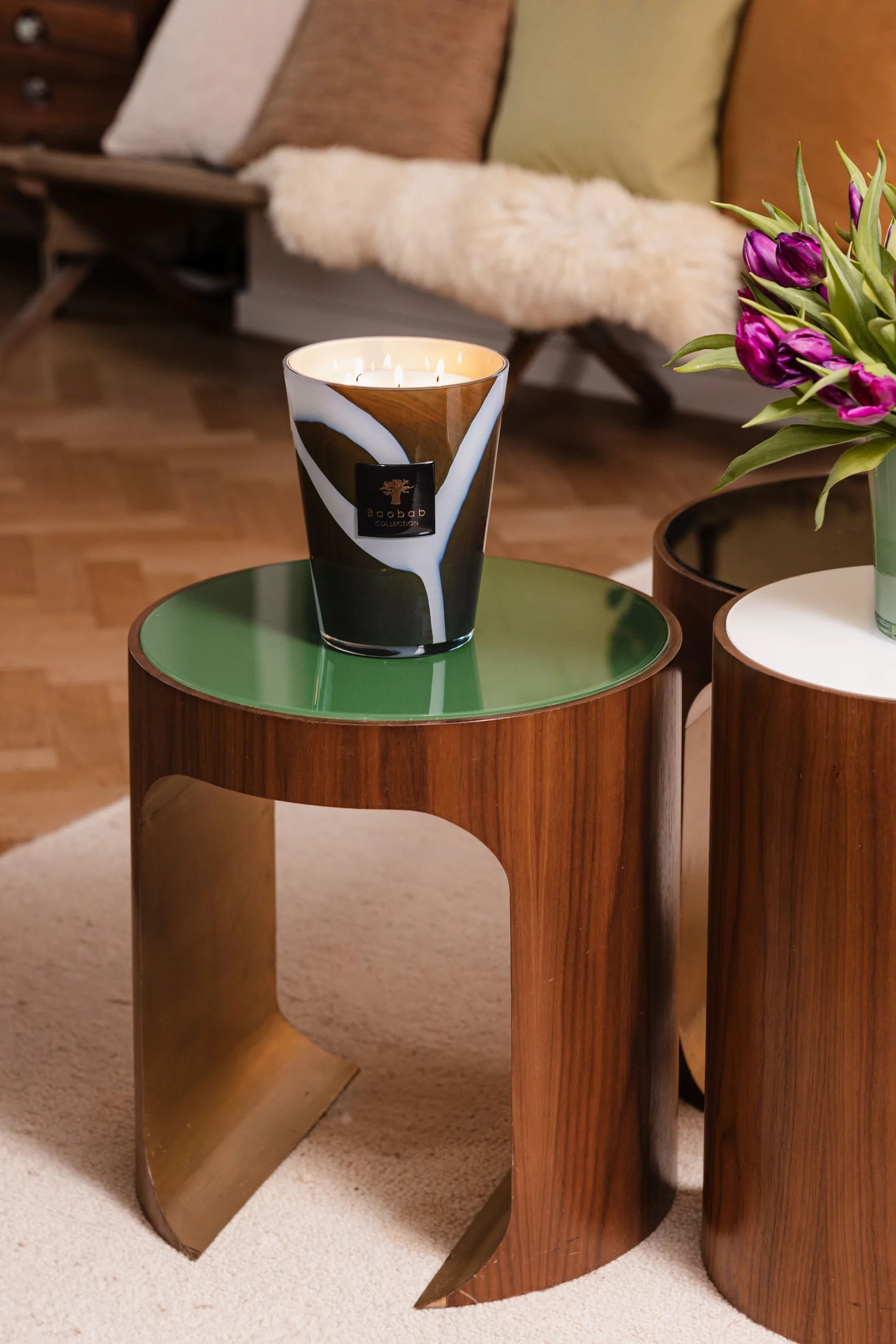 Le verre de la bougie parfumée Agate rappelle la magie des pierres brésiliennes de Minas Gerais. Les formes se placent d’une façon aléatoire selon la dextérité des artisans, donnant à chaque bougie un aspect unique.