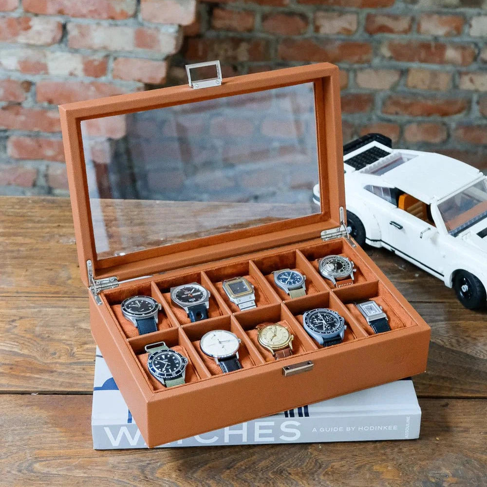 Toutes vos montres sont visibles d’un seul coup d’œil grâce au couvercle avec sa vitre transparente, ce qui vous permet de choisir rapidement celle que vous souhaitez porter.