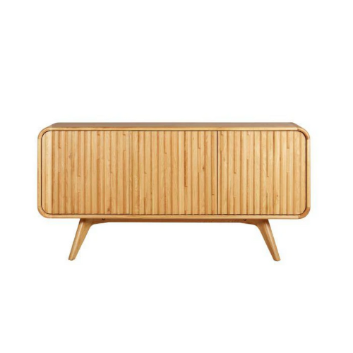Ce buffet 3 portes est idéal pour un grand séjour et pour répondre à un besoin de rangement. En effet, grâce à ses 3 placards chacun composés d'une étagère, profitez d'un grand espace de rangement. Ce buffet aux angles arrondis illumine votre pièce, on adore ce jeu de relief sur la partie avant du meubl