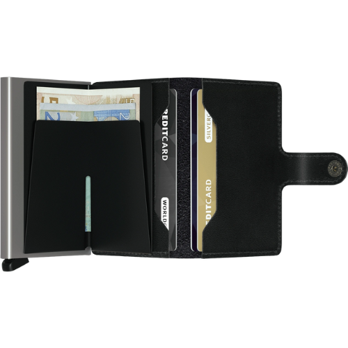 Petit par sa taille et étonnamment grand par sa capacité de stockage, le Miniwallet combine le meilleur des deux mondes. L'extérieur peut contenir des billets de banque, des reçus et des cartes, tandis que le Cardprotector en aluminium vous permet de faire sortir les cartes d'un simple mouvement et les protège contre pliures, cassures et les communications sans fil non désirées.